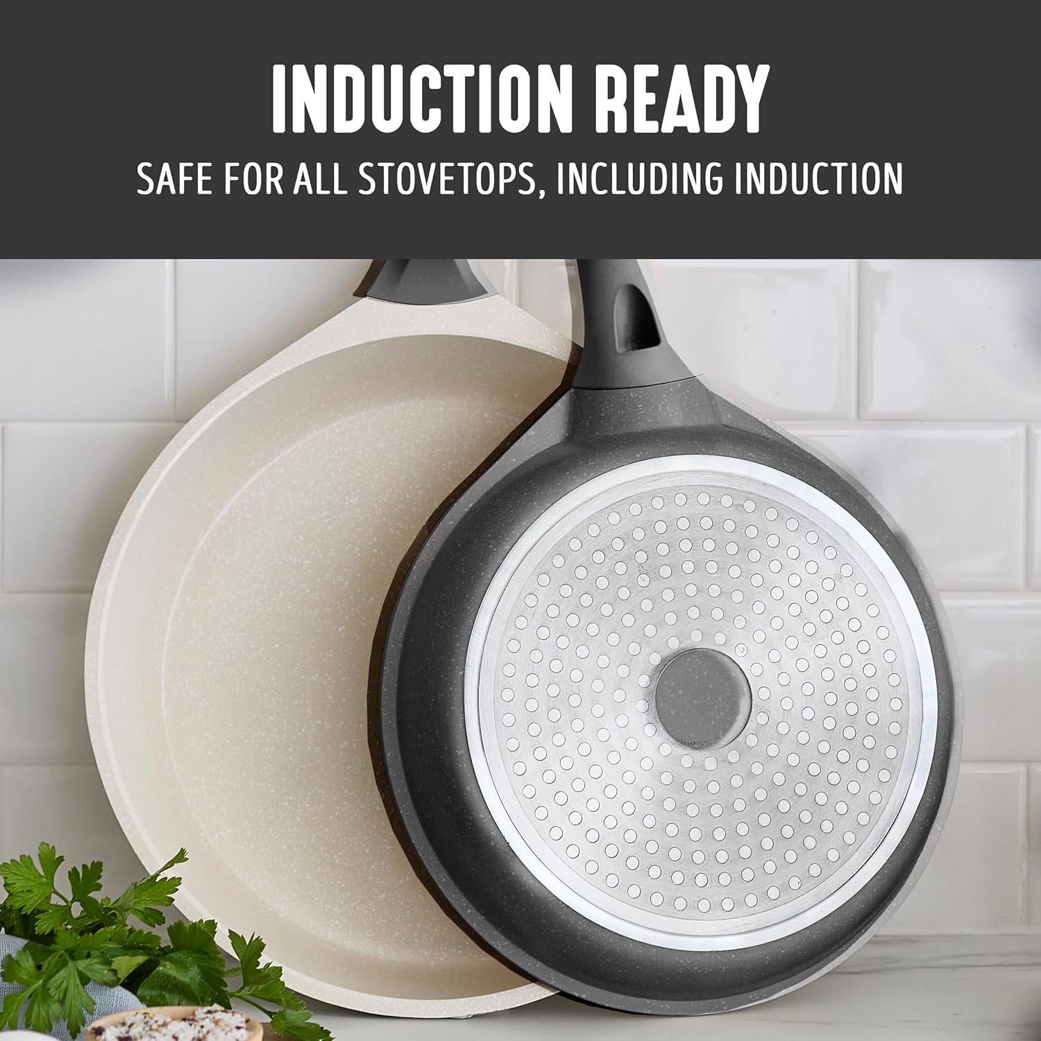 Pronto para indução: a inovadora base de indução proporciona distribuição uniforme de calor em todos os cooktops: indução, gás, elétrico, halogênio ou cerâmica.