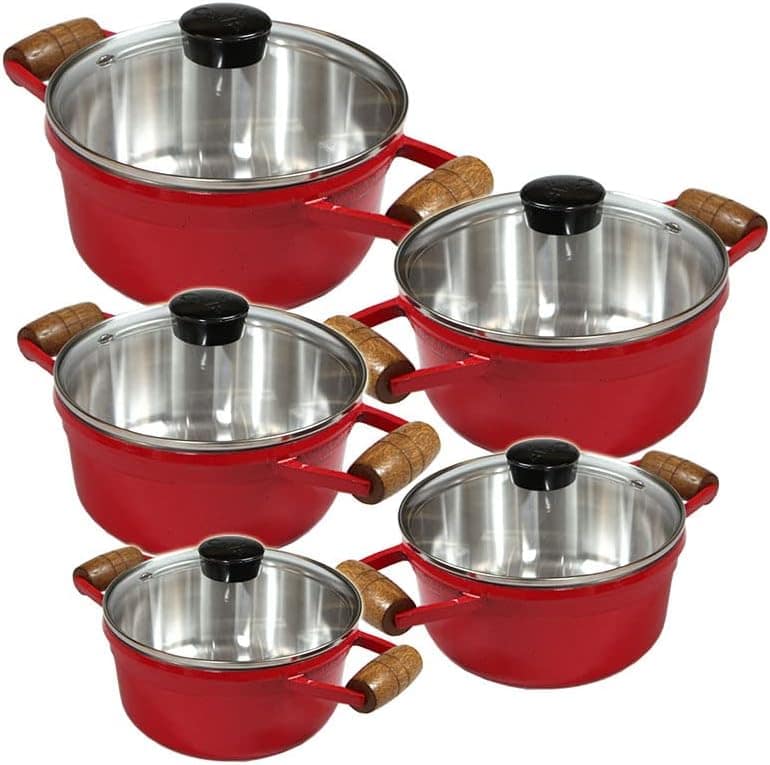 Jogo 5 Panelas Cava Alumínio Fundido com Tampa de Vidro N16: Prepare Alimentos de Forma Rápida e Fácil