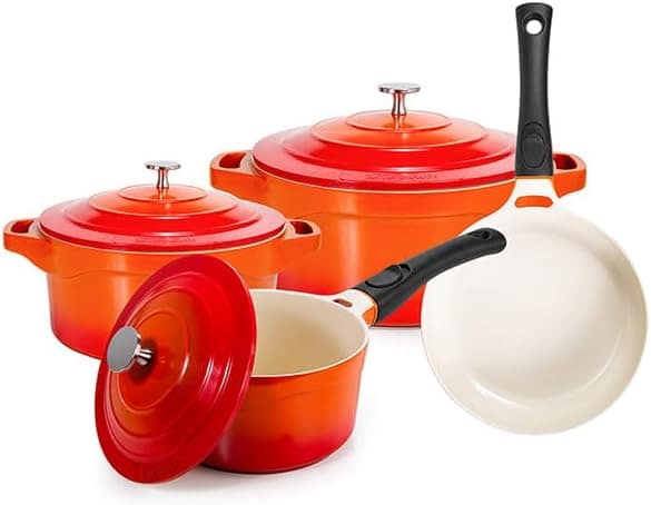 The Le Cook 4-piece orange pots and pans set is a must-have for any home cook. With its durable design, advanced technology, and eco-friendly features, this set is perfect for beginners and experienced cooks alike.