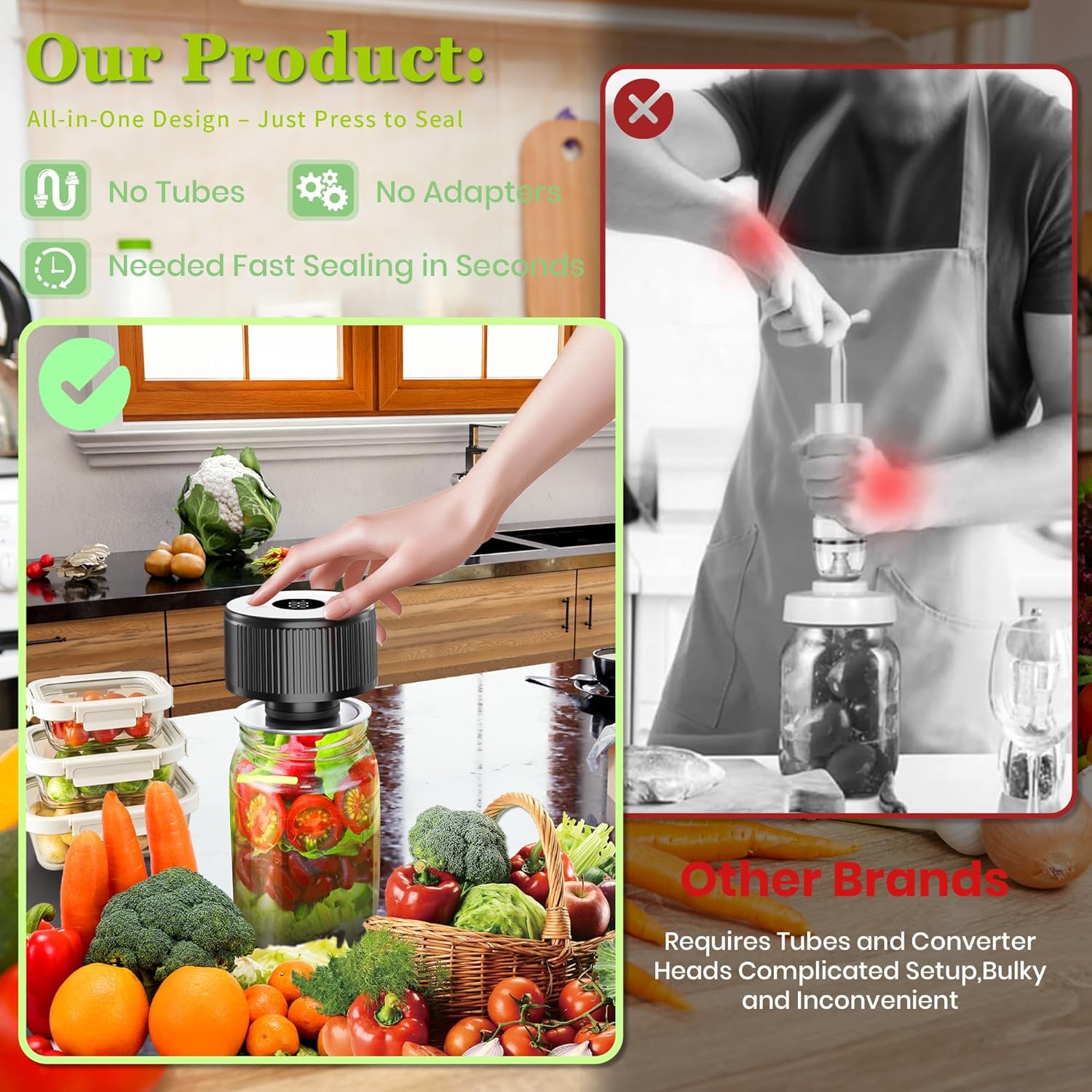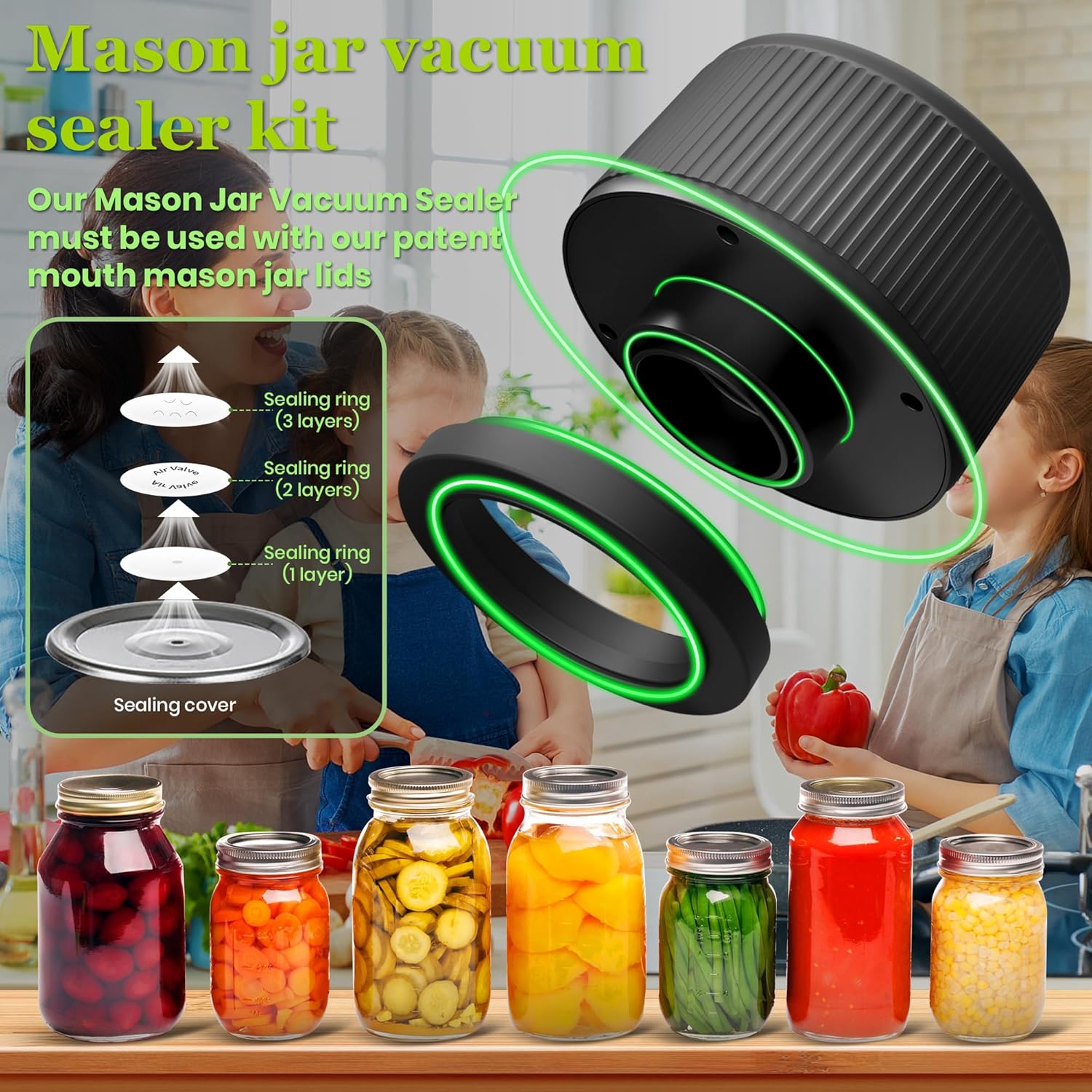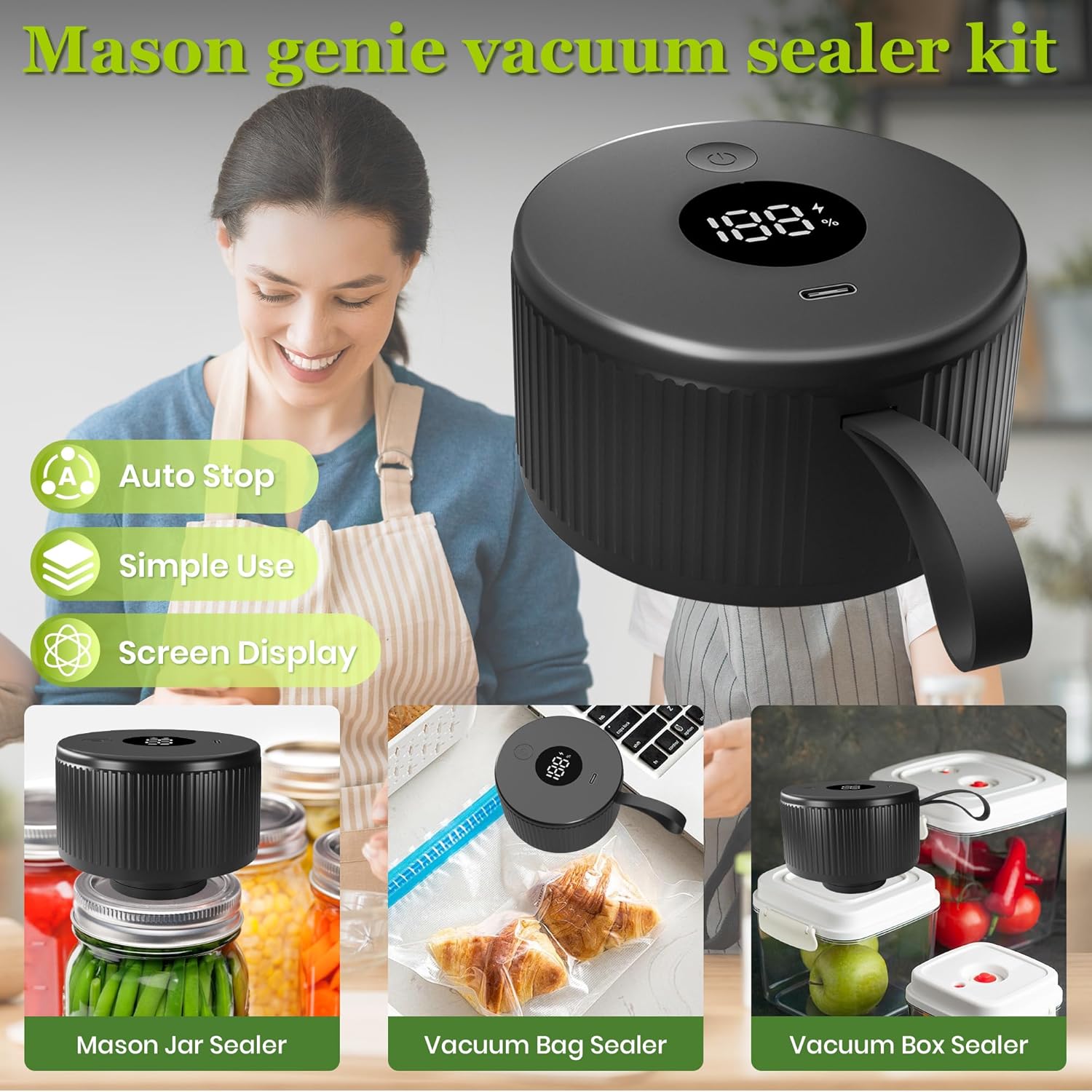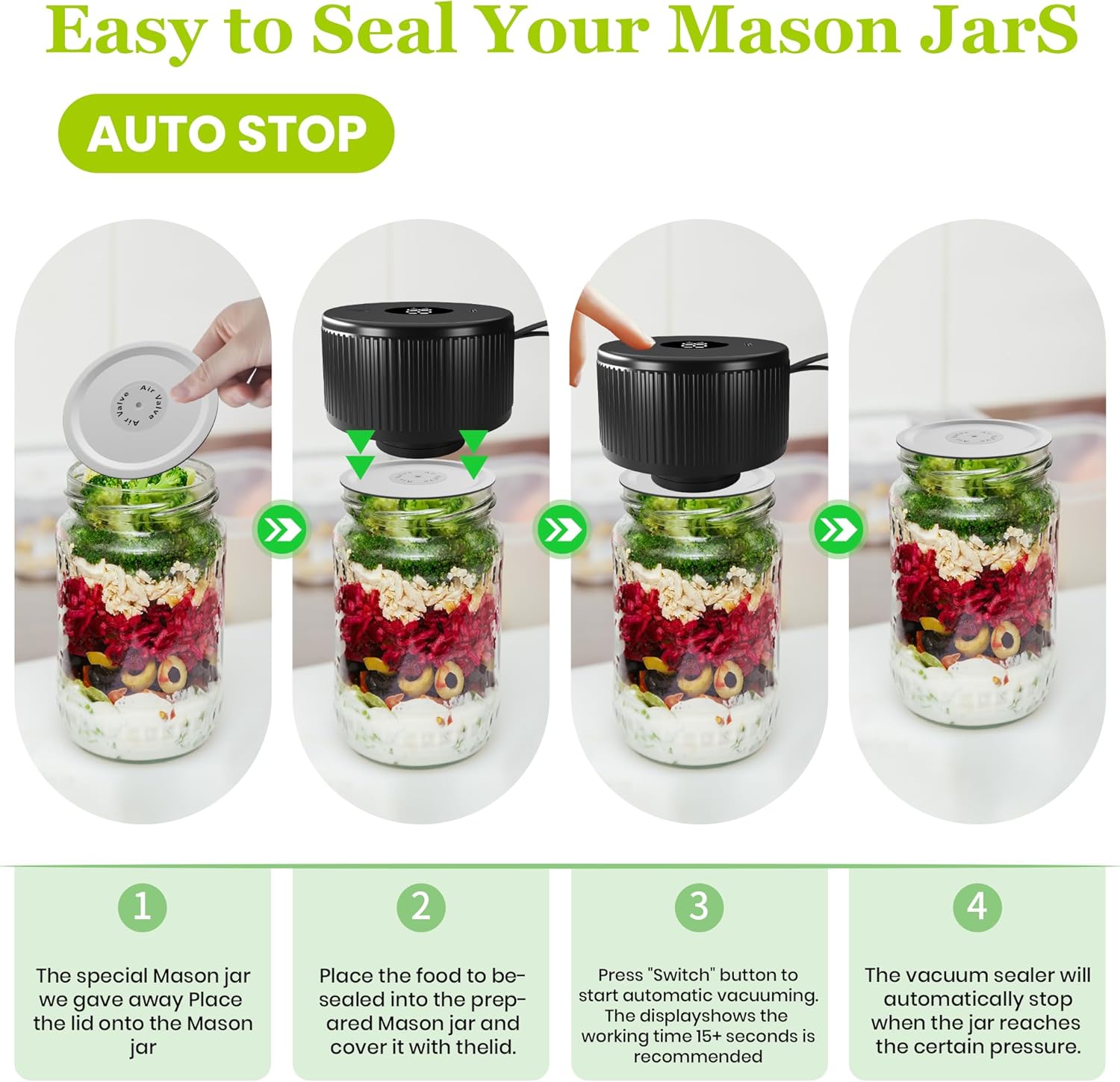 Kit de seladora a vácuo Mason Pote, seladora a vácuo para fr…