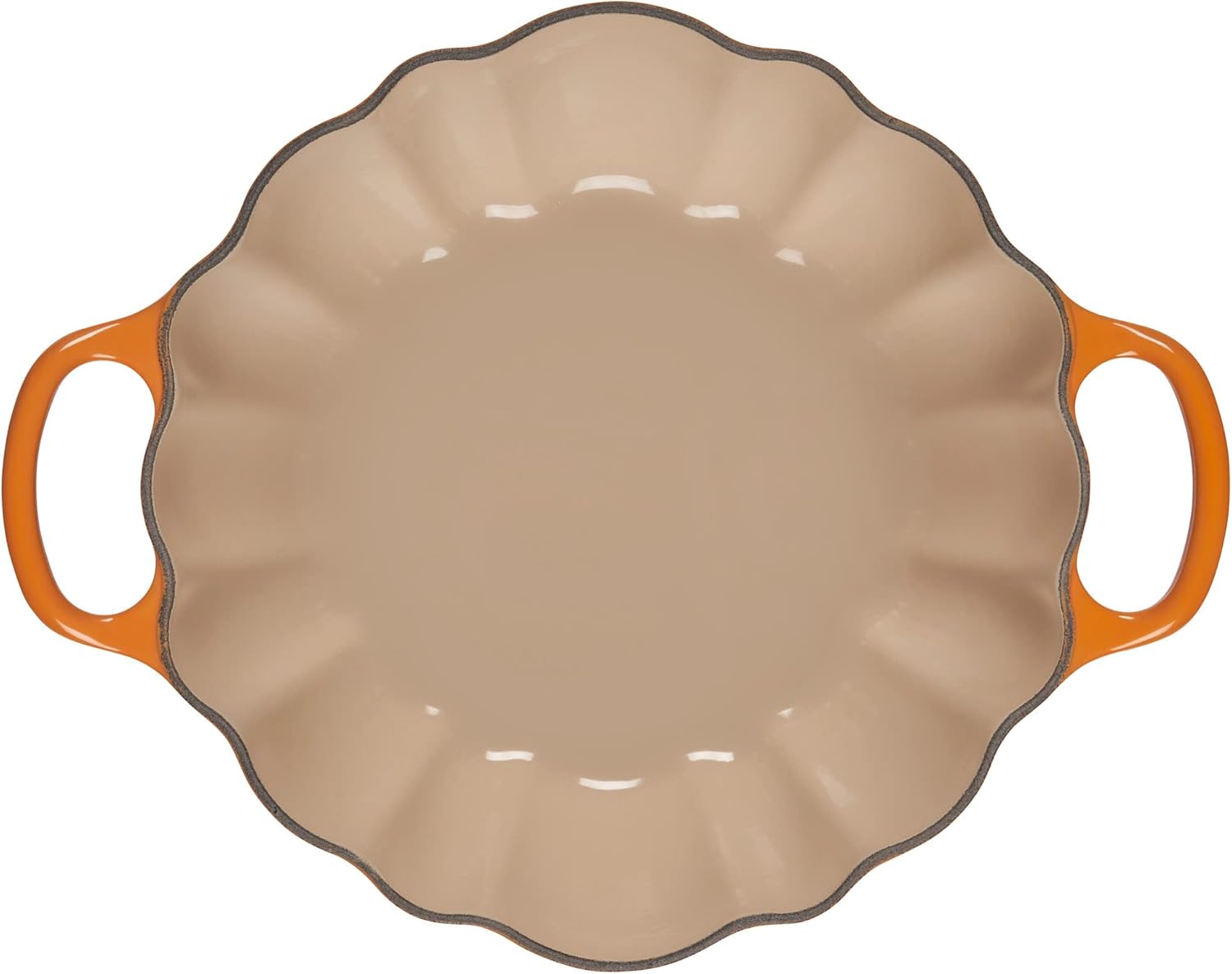 Review: I donât cook much myself, but as the chief dishwasher in the house, I can vouch for how wonderful Le Creuset cleans up. That finish is amazing! It also looks like fall decor when waiting to be used, or as a serving dish. I advise against dropping it on your toe.