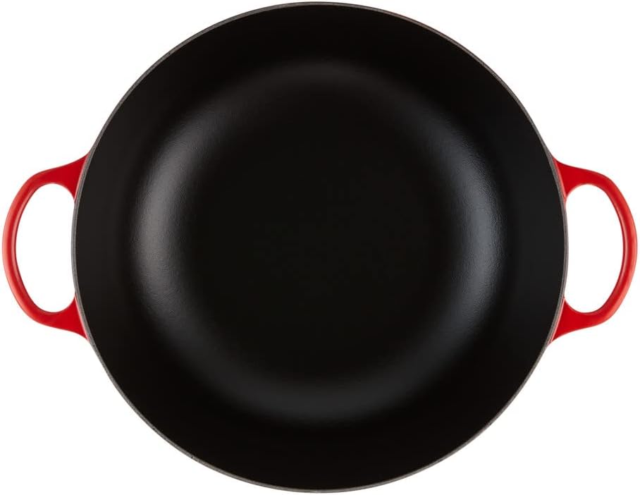 Review: This La Marmite pan is truly multi purpose. Ideally suited to stewing and casseroles, but the rounded shape of it also makes it useful as a wok. Also use for cooking pot roast and the 32cm one I have will easily fit a large chicken.For stews and casseroles this thing is enormous and when filled could feed 8-10 people.The satin black interior means it’s ideally suited to searing/browning meat before cooking.I can’t fault it.It is very heavy, which is fine for me. Others may find in too heavy.