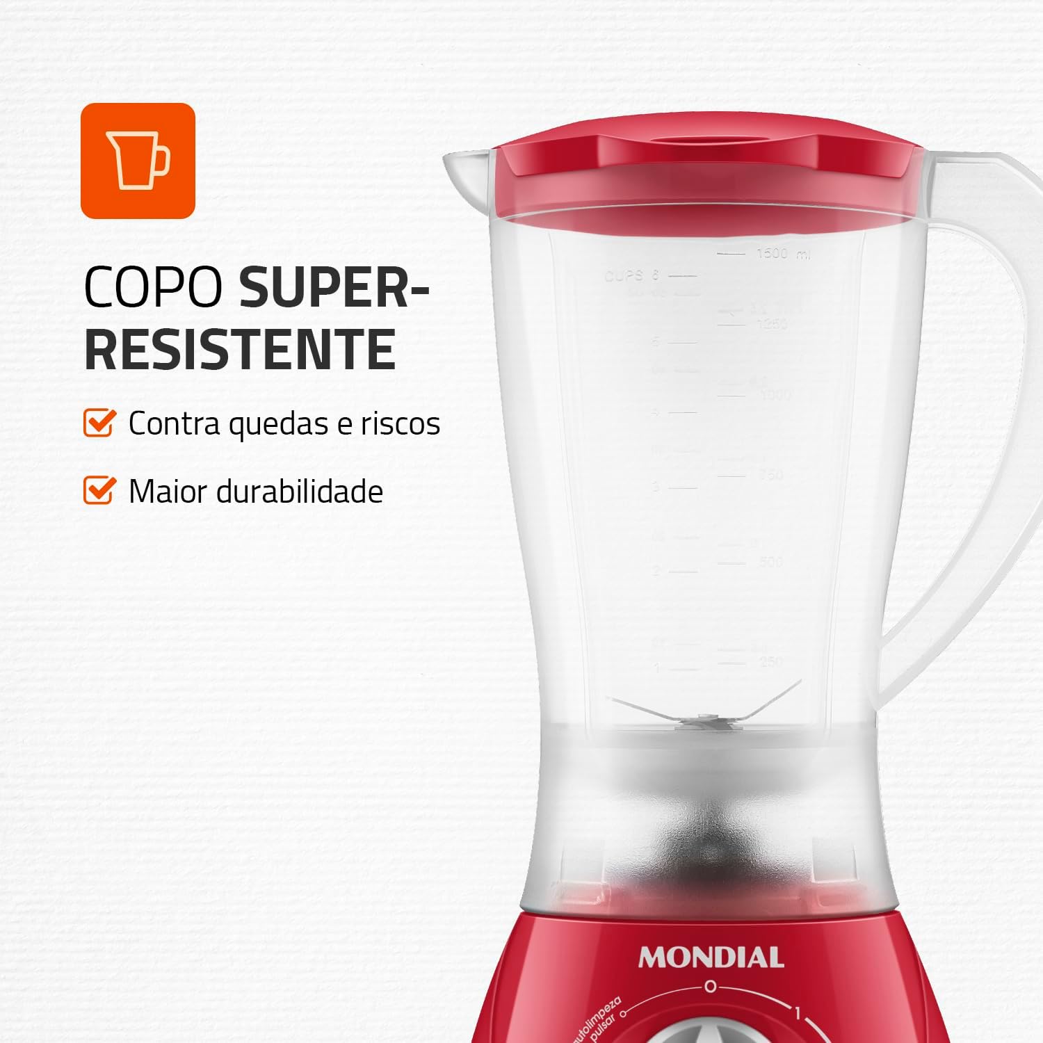 Review: Muito bom, ele e pequeno em comparação com outros liquidificadores a jarra e de 1500 ml e o motor tem duas velocidades. Mas me atende super bem. O copo e de um plástico mais resistente. Então funciona muito bem!