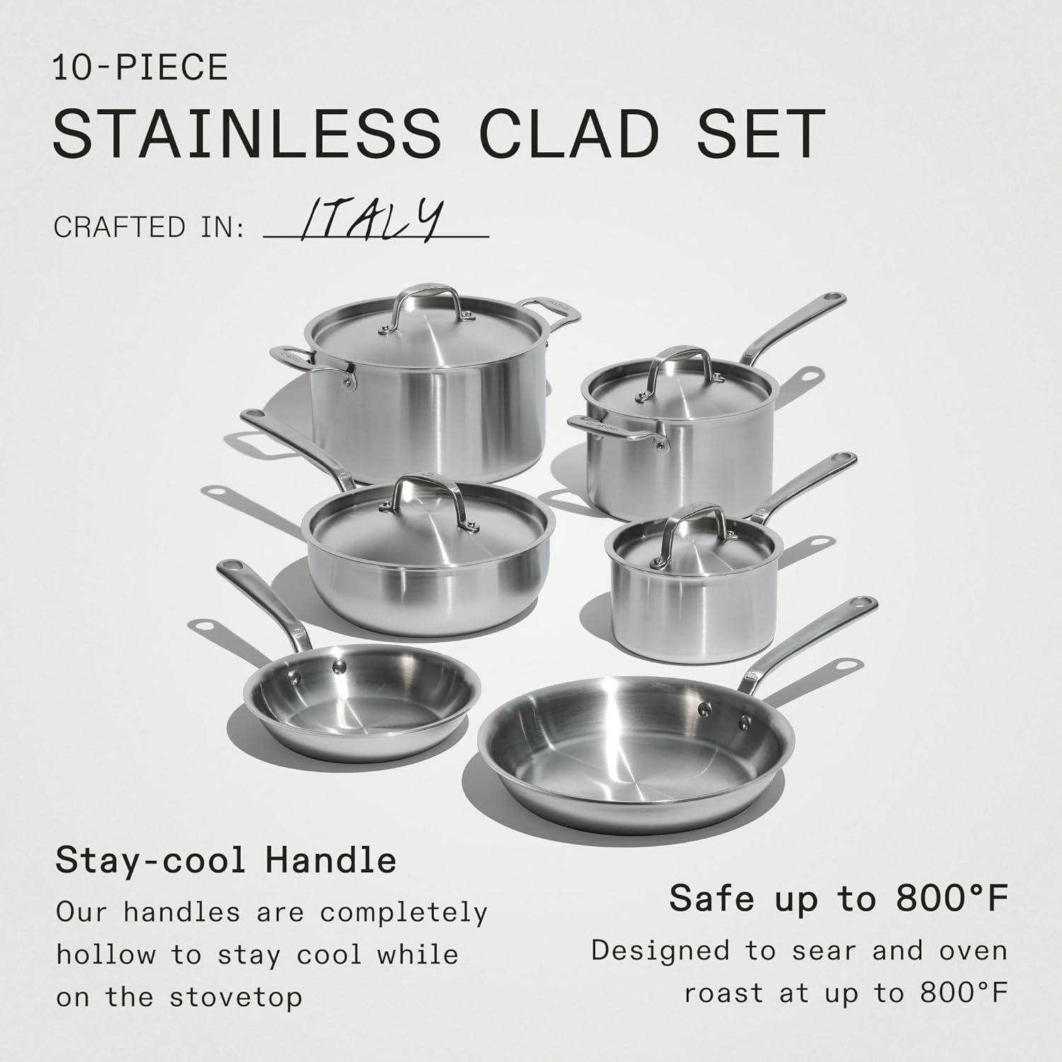 Review: Best cookware I’ve used. It’s expensive for sure but the value is noticeable when you start to use them. Very even heating, exceptional quality, nice heavy feel with handles that stay cool. There’s a learning curve for transitioning to stainless from non stick but easier than anticipated. Be sure to pick up the stainless cleaner as well. After a couple weeks of use, I can see how these pots/pans will last a lifetime if they are taken care of.