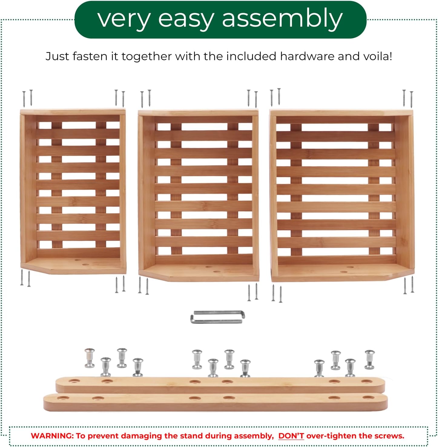 Review: Most of us know that we should all be eating more fruits and veggies to stay in optimal health, yet if we shove them into a crisper or cabinet, “out of sight, out of mind” comes into play. And then there’s the whole issue of an overly full refrigerator. This is a neat way to combat both problems!It eases the fridge overflow because many items commonly stashed in a crisper don’t need refrigeration. (When you buy it at the store and it’s not in a chiller, then it doesn’t belong in your crisper!) Secondly, this stores “the good stuff” out in plain sight, keeping it at the forefront of one’s mind! If you have kids around, a good presentation might sway them to grab an apple or banana rather than junk food. After all, it’s right there at hand!The unit arrives in a small box that immediately signals that yes, you WILL need to assemble it. This turns out to be quite easy, as all parts are identified by a letter/number and an easy to follow illustrated instruction sheet. Except for a medium sized Phillips screwdriver, all tools (two Allen keys) are included. I managed to put it together myself in about 15 minutes, although another set of hands would have been ideal…and faster. My only criticism is that there are no extra screws or bolts included “just in case” one gets away from you and drops down the air vent.The combination of easy assembly, good looks and practicality – no more using my salad and candy bowls to hold my produce – make this a great buy in my opinion. Saves counter space, too!