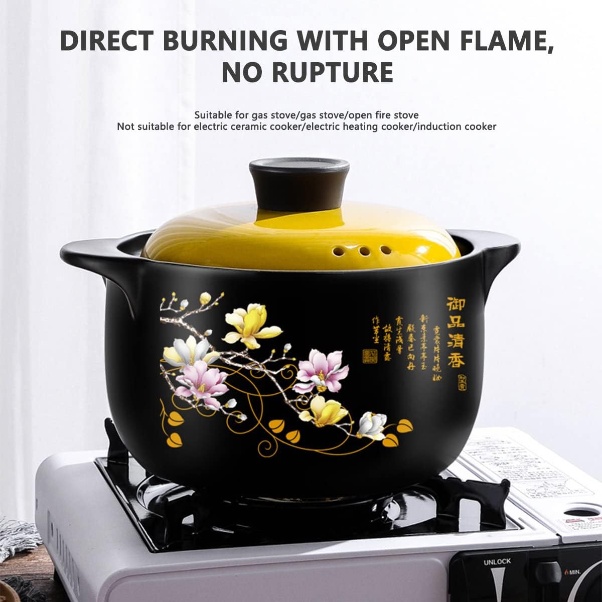 Feito de materiais naturais de alta qualidade: esta caçarola é feita de materiais naturais de alta qualidade e queima de alta temperatura, suportando -20 °C a +600 °C, a queima a seco não racha, mais durável do que a caçarola comum. Uma panela de cozinha natural pura.