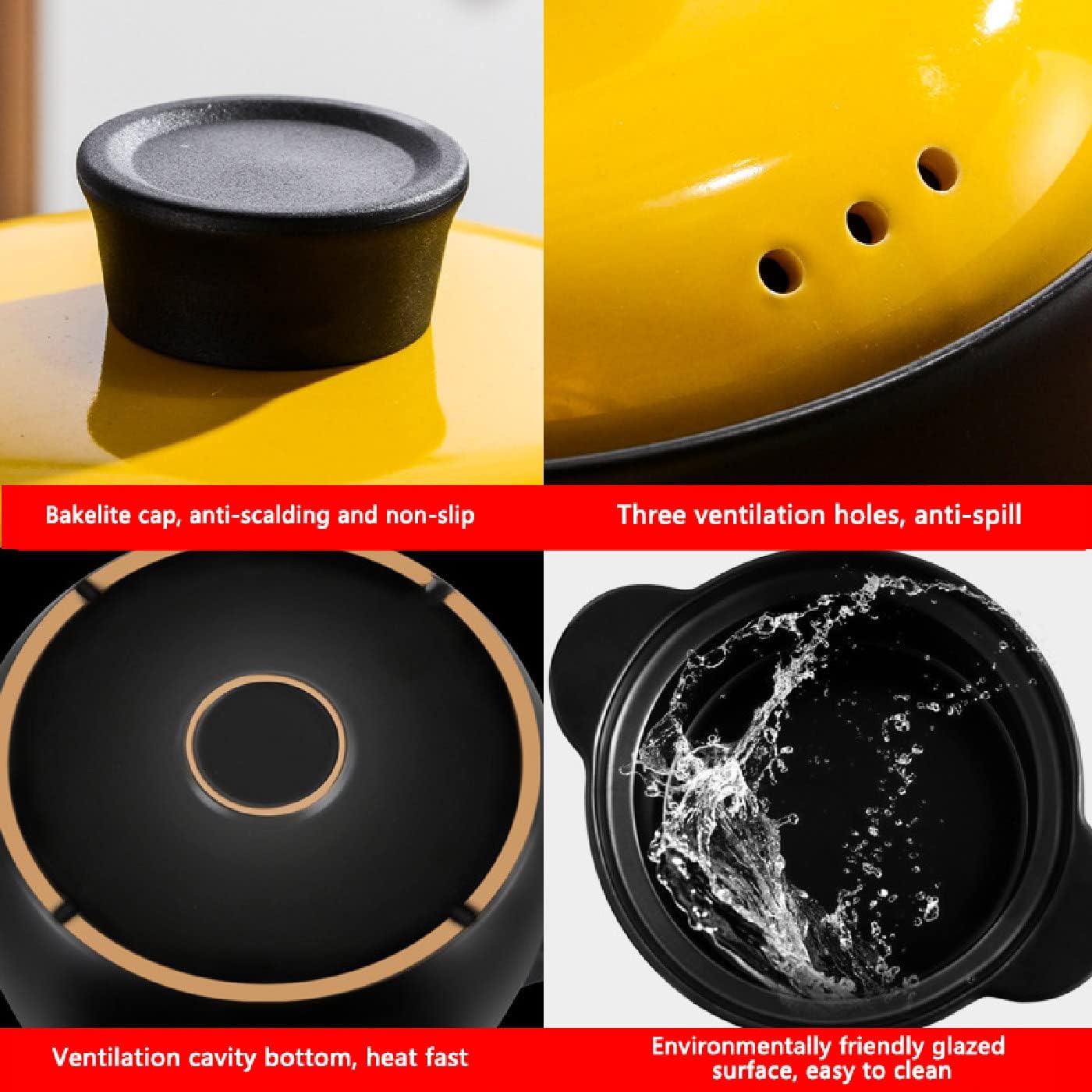Pote de cerâmica saudável: panela de caçarola com tampa de ventilação de vapor para evitar transbordamento de água. A culinária saudável traz o melhor sabor. Pode ser fervido, grelhado, refogado, marinado ou assado.
