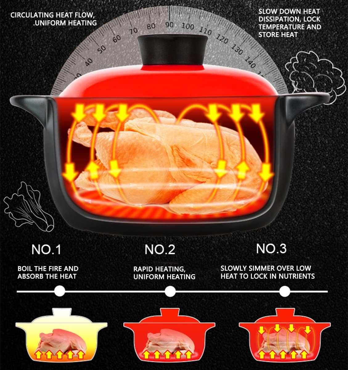 Excelente condutividade térmica: adequado para aquecedor elétrico de cerâmica, fogão elétrico, fogão a gás, forno, forno de microondas, geladeira, etc. A resistência especial ao choque térmico permite a transferência de ambientes de alta temperatura para baixa temperatura. (Nota: remova a tampa da panela ao aquecer no forno de micro-ondas ou forno.)