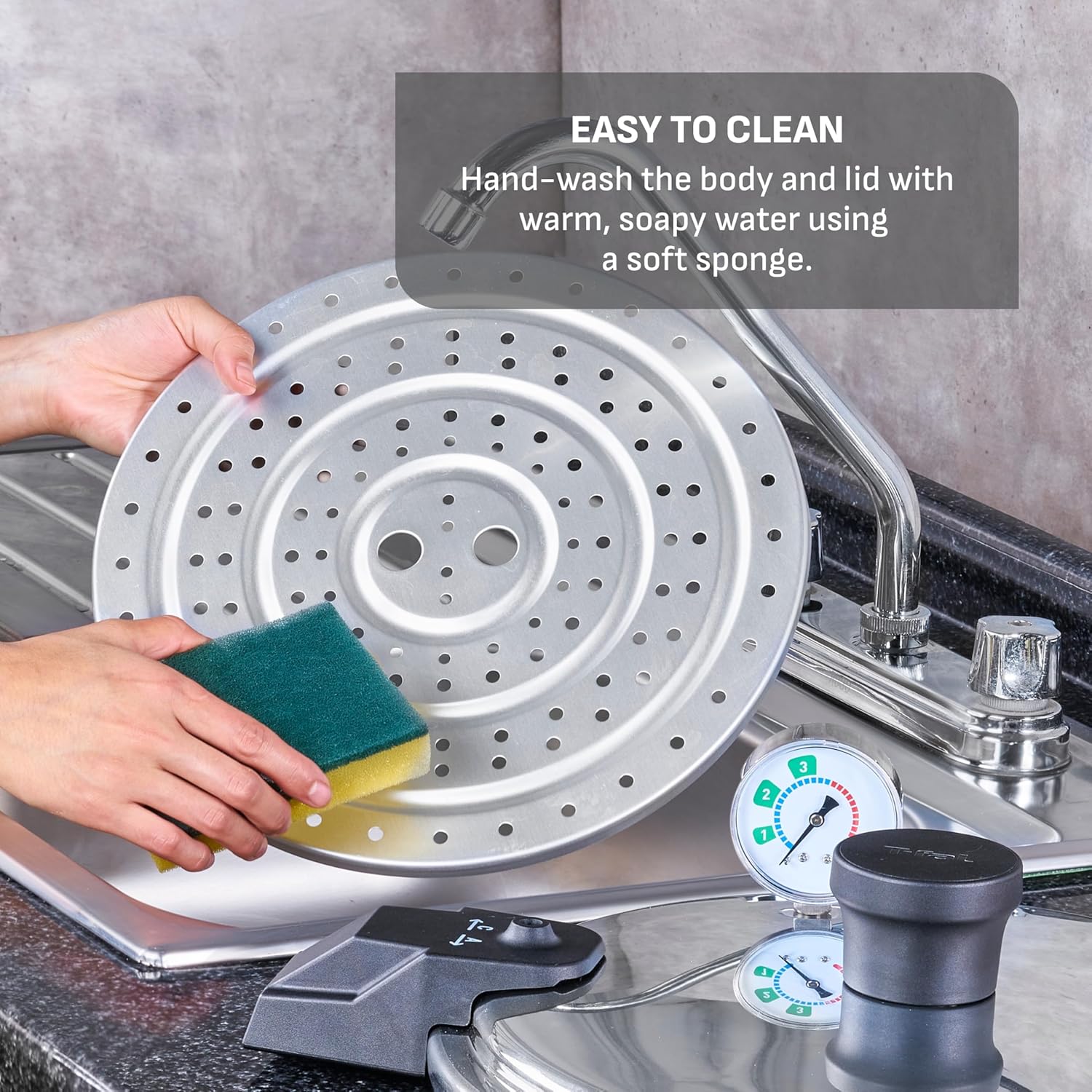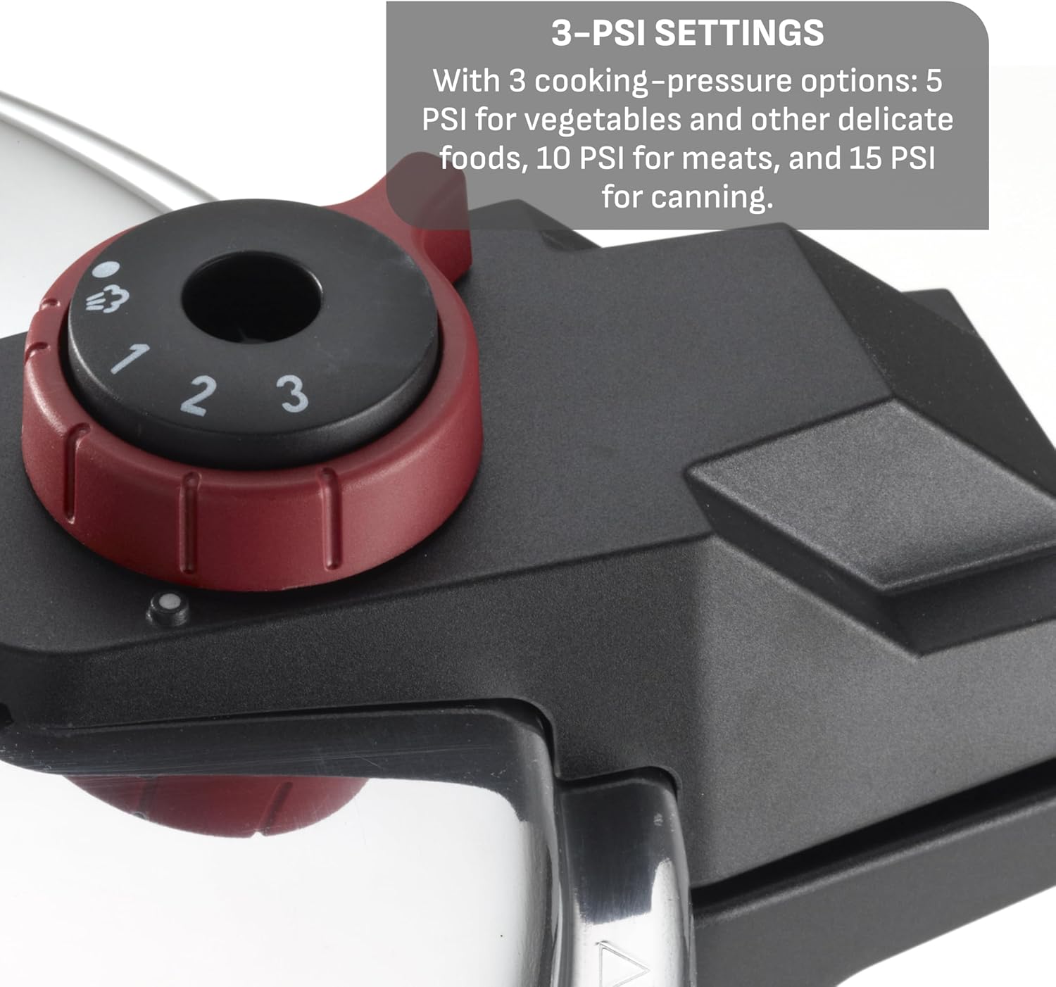 Sinta-se seguro: Com um mecanismo de bloqueio seguro para garantir abertura e fechamento sem risco, uma válvula de liberação de vapor e medidor para monitorar a pressão (a exibição do medidor pode variar) e alças resistentes para uma aderência segura e confortável