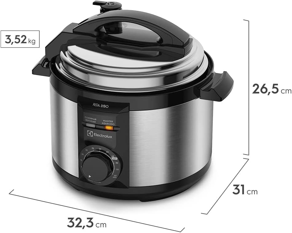 Especificações Técnicas do Panela Pressão Elétrica Electrolux Capicade 3L Silenciosa Se…