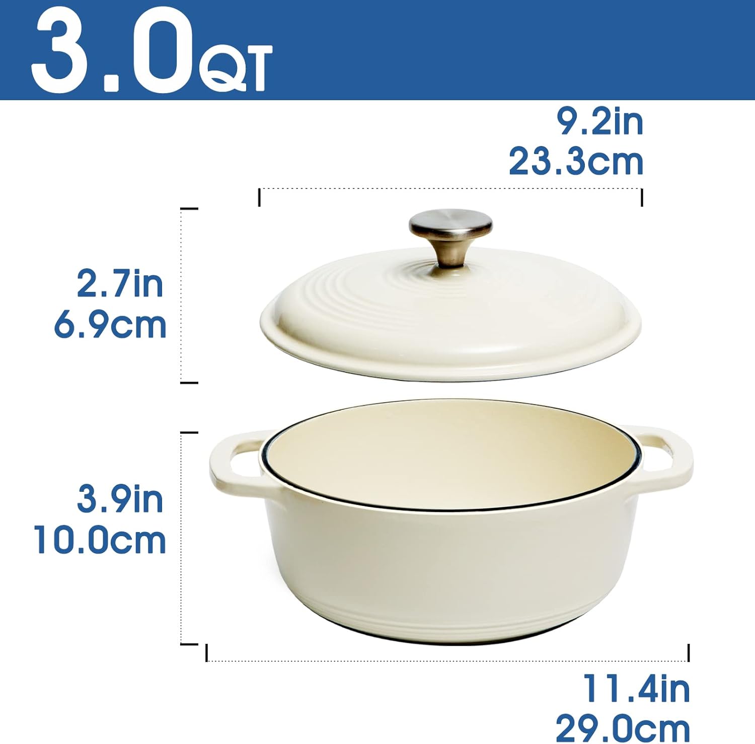 Variedade de usos: o forno holandês esmaltado distribui e retém o calor uniformemente. Pode ser usado para assar, tostar, refogar e saltear. É fundamental para melhorar qualquer refeição, desde assados, chilis e massas até pães caseiros. Tamanho perfeito para 2 a 3 pessoas. Mede 23 cm (D) x 10 cm (A). Capacidade: 3 L.
