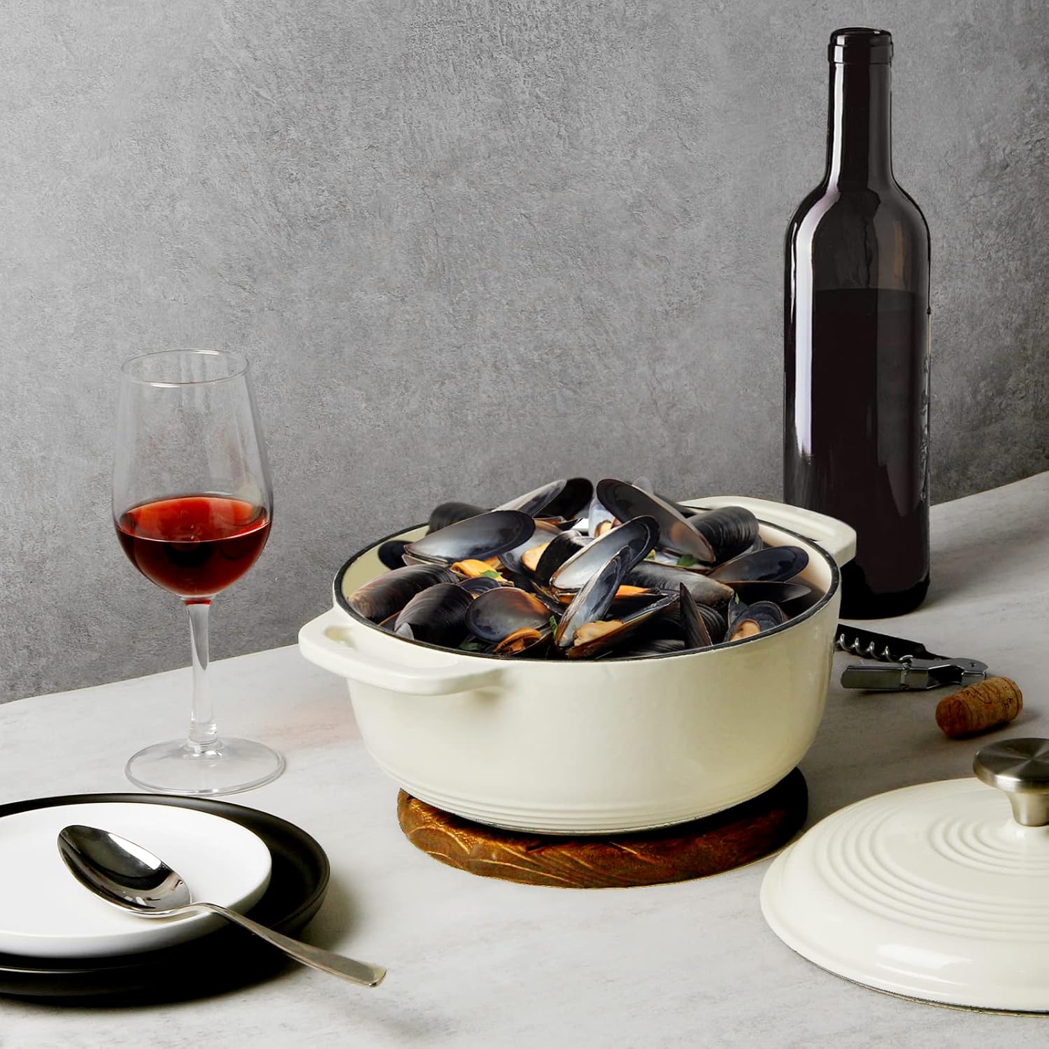 Uma obra de arte no seu fogão: esta panela holandesa branco-ostra lindamente projetada é atraente e apimenta ainda mais a cozinha, enquanto o interior de cor creme facilita ver como tudo está cozinhando. Adequada para refeições diárias ou reuniões sociais especiais.