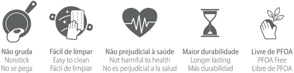 - O revestimento antiaderente não emite substâncias perigosas para a saúde, oferecendo um ambiente mais seguro e saudável;