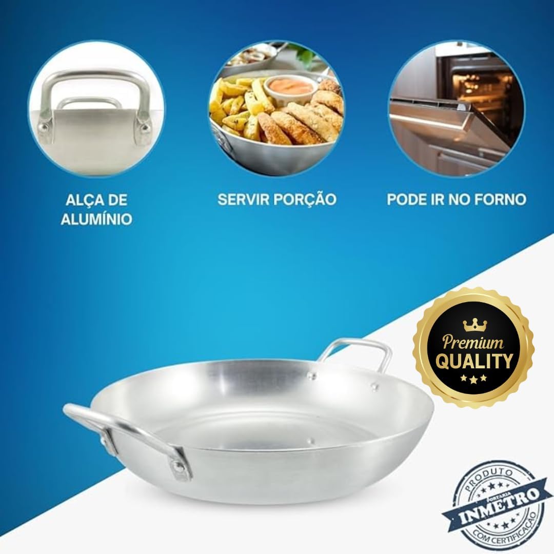 O Panelinha de Porções Tachinho Frigideira de Parmegiana de Restaurante é uma frigideira em alumínio resistente ao calor e fácil de limpar, com capacidade para lanches, parmesão e frango, e um desenho elegante e prático que facilita o transporte e a apresentação dos alimentos.