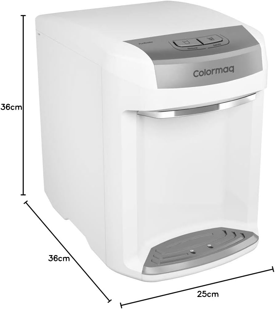 Purificador de Agua Colormaq Eletronico Natural/Gelada Branc… | Preço acessível, água natural e gelada, design compacto, filtro eficiente. | Vazão da água não é a mais rápida, a água gelada poderia ser mais gelada. |