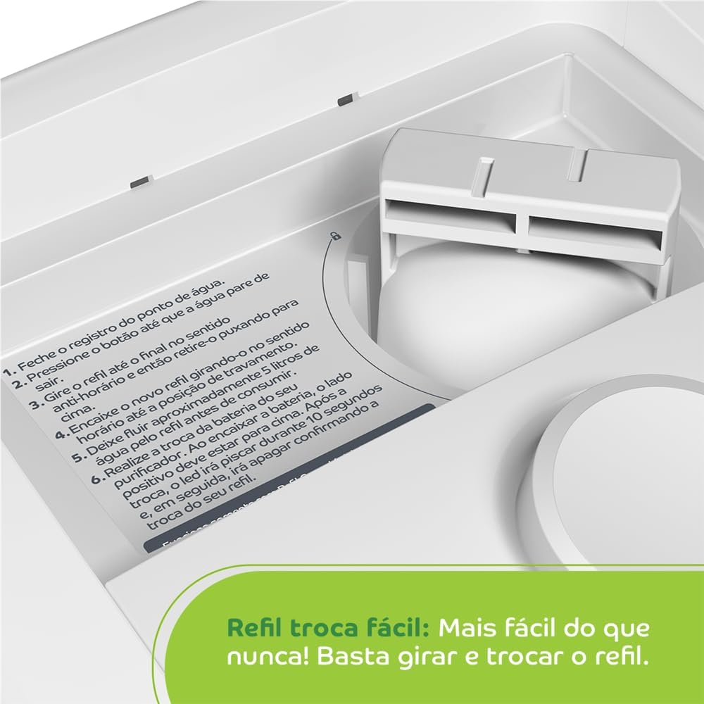 - Fácil instalação e troca do filtro: Nada de complicações! A instalação é simples e a troca do refil é rápida e prática, sem precisar de um técnico.
