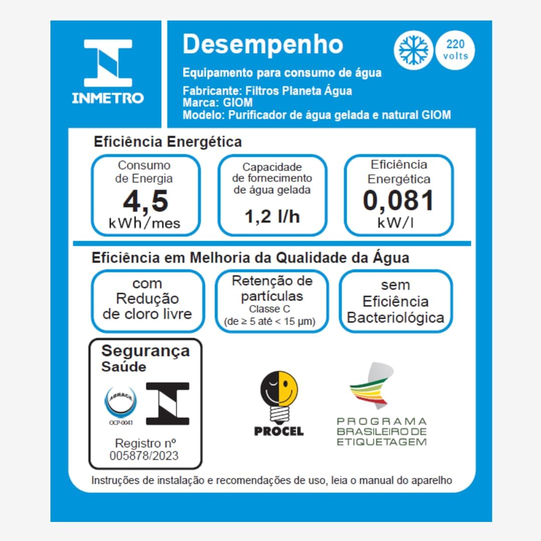 | PURIFICADOR GIOM PA11 B/B 127V | Design moderno, filtro eficiente, fácil instalação, boa vazão de água. | Não possui recursos inteligentes, preço ligeiramente mais alto. |
