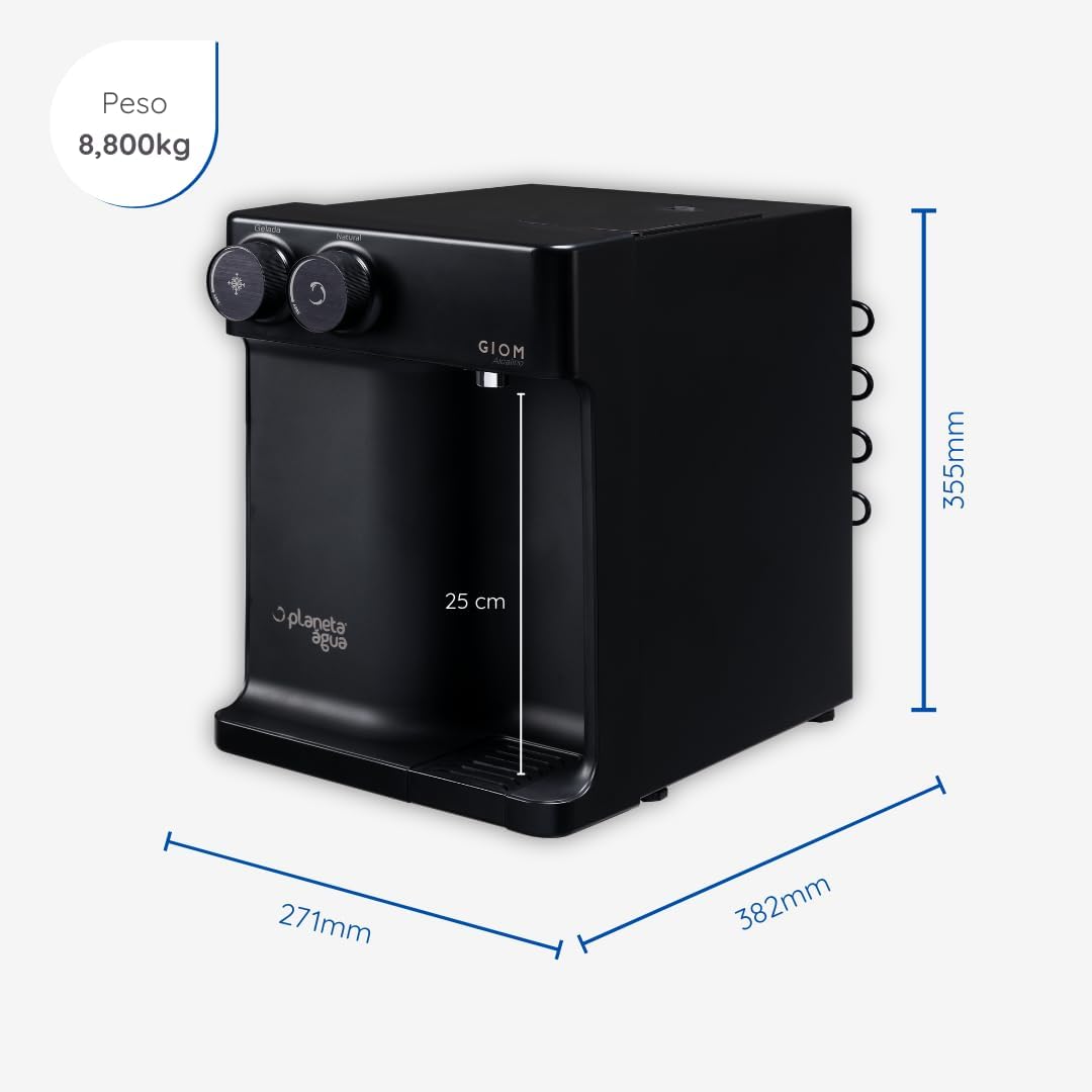 - Design Compacto e Moderno: O purificador não ocupa muito espaço na bancada e tem um design que combina com a maioria das cozinhas. Ele é discreto e funcional.