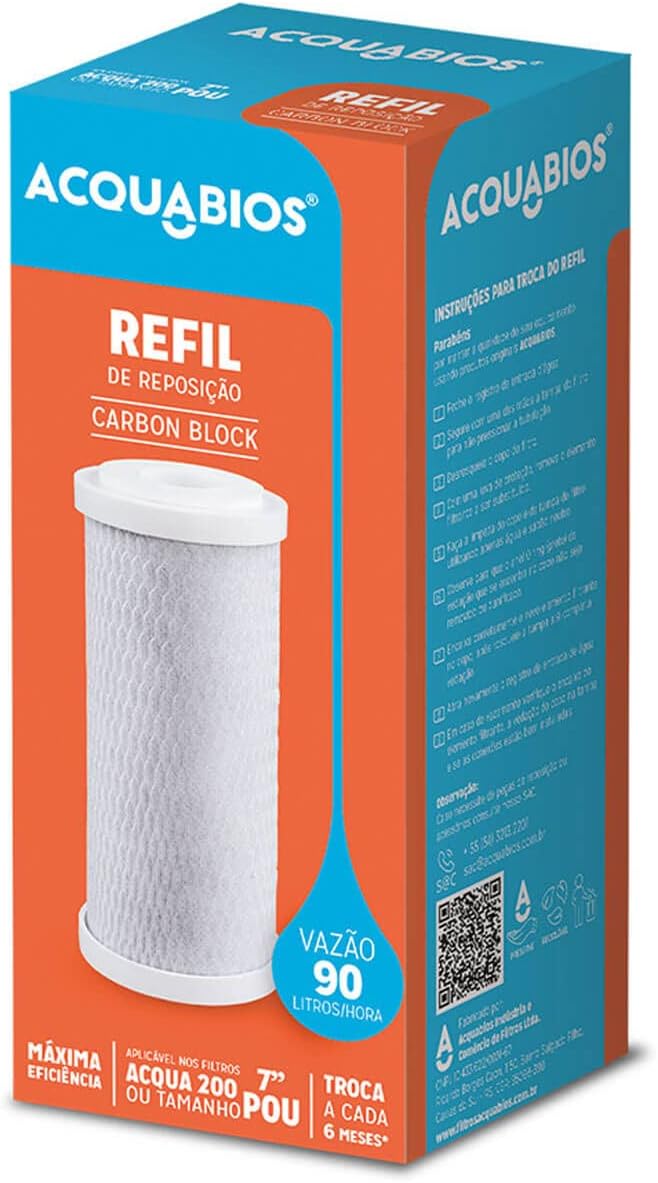 | Refil Filtro De Água Carbon Block 7 Acquabios 1003-0002, Acq… | Excelente custo-benefício, remoção eficaz de cloro e sedimentos, fácil instalação, compatibilidade com diversos purificadores. | Durabilidade pode variar dependendo da qualidade da água da região. |
