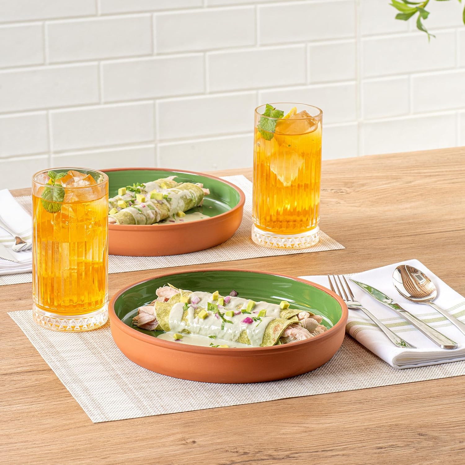 Interior esmaltado verde: adicione um toque de cor aos seus pratos! Cada tigela de terracota possui um interior de vidro azul vibrante, tornando suas refeições visualmente atraentes. Um banquete para os olhos!