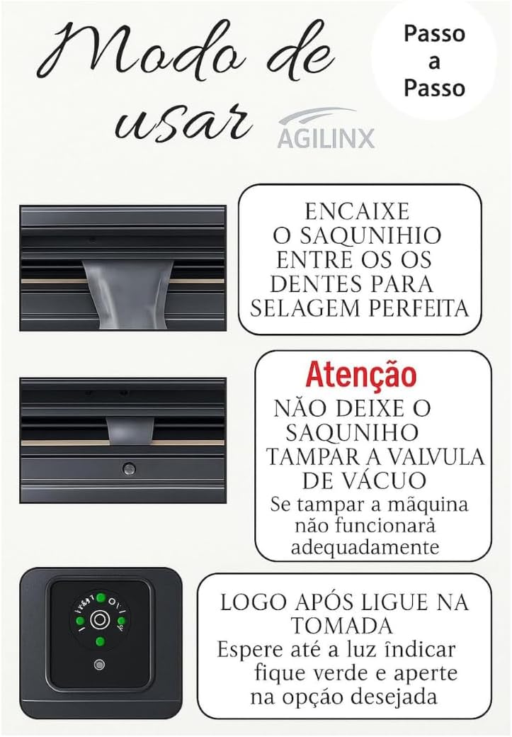 - Selagem automática: Basta colocar a embalagem e a máquina faz o resto.