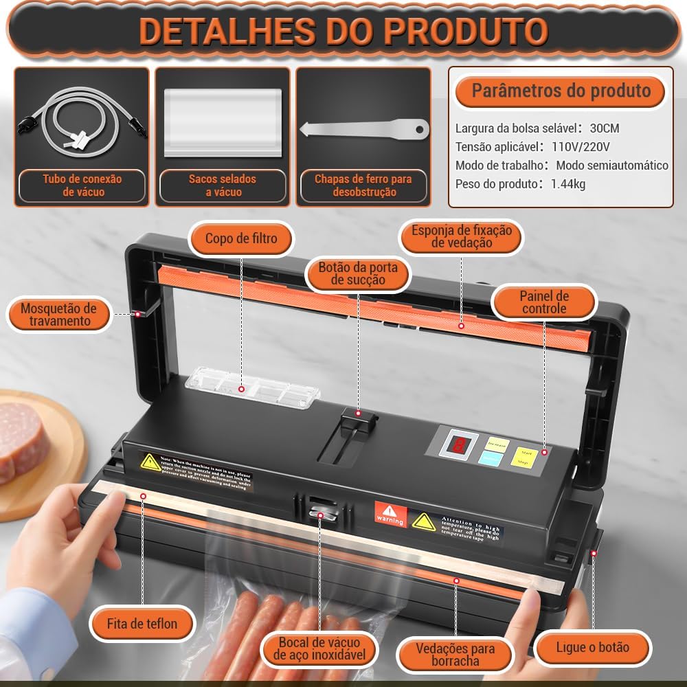 Prós: Potência de sucção excelente, função de selar sem vácuo, durabilidade.
