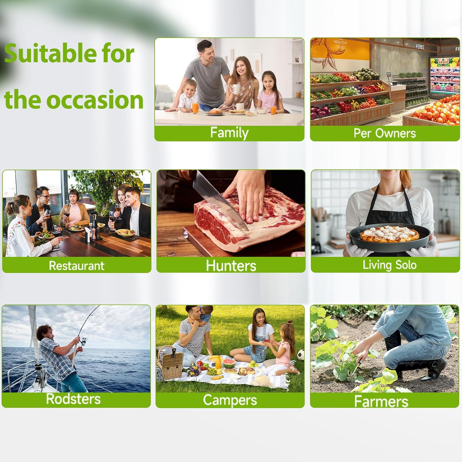 • Sabor e nutrientes preservados: A embalagem a vácuo ajuda a manter o sabor original e os nutrientes dos alimentos.