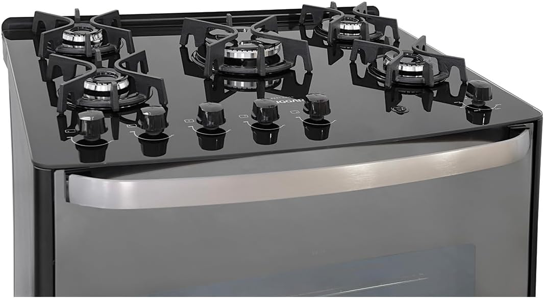 Review: Péssimo produto, foi uma decepção, o forno em menos de 3 meses de uso o forno parou de funcionar.Um dia fiz pastel e acabou transbordando um pouco de óleo no tampo de vidro e entrou pelo bocal e está escorrendo óleo pra dentro do fogão até hoje, desmontei o bocal mas não deu certo, chamei à assistência técnica e me foi dito que é de fábrica.