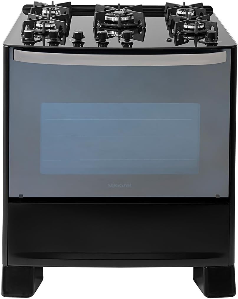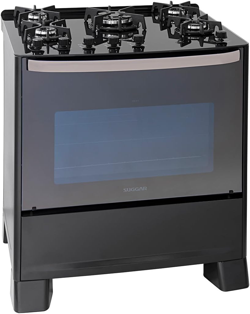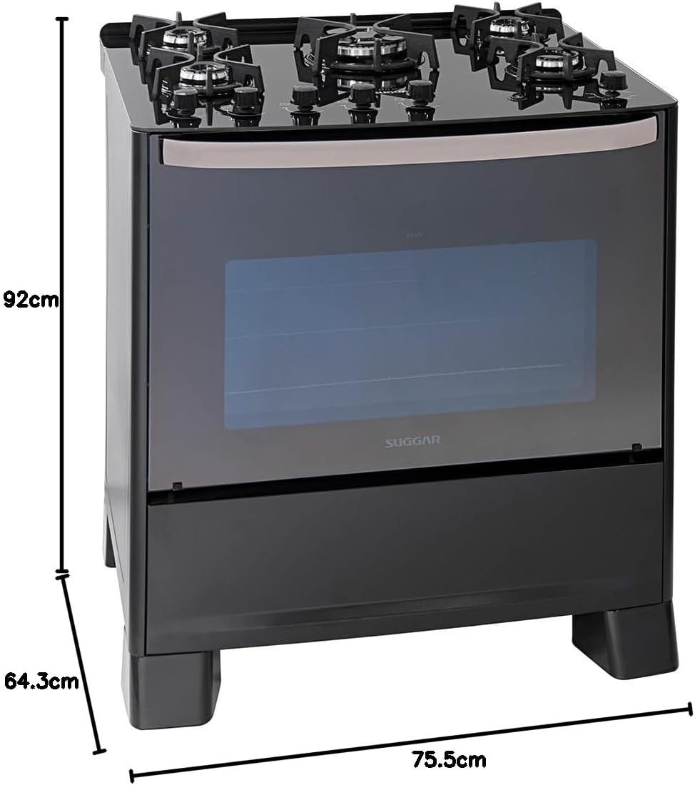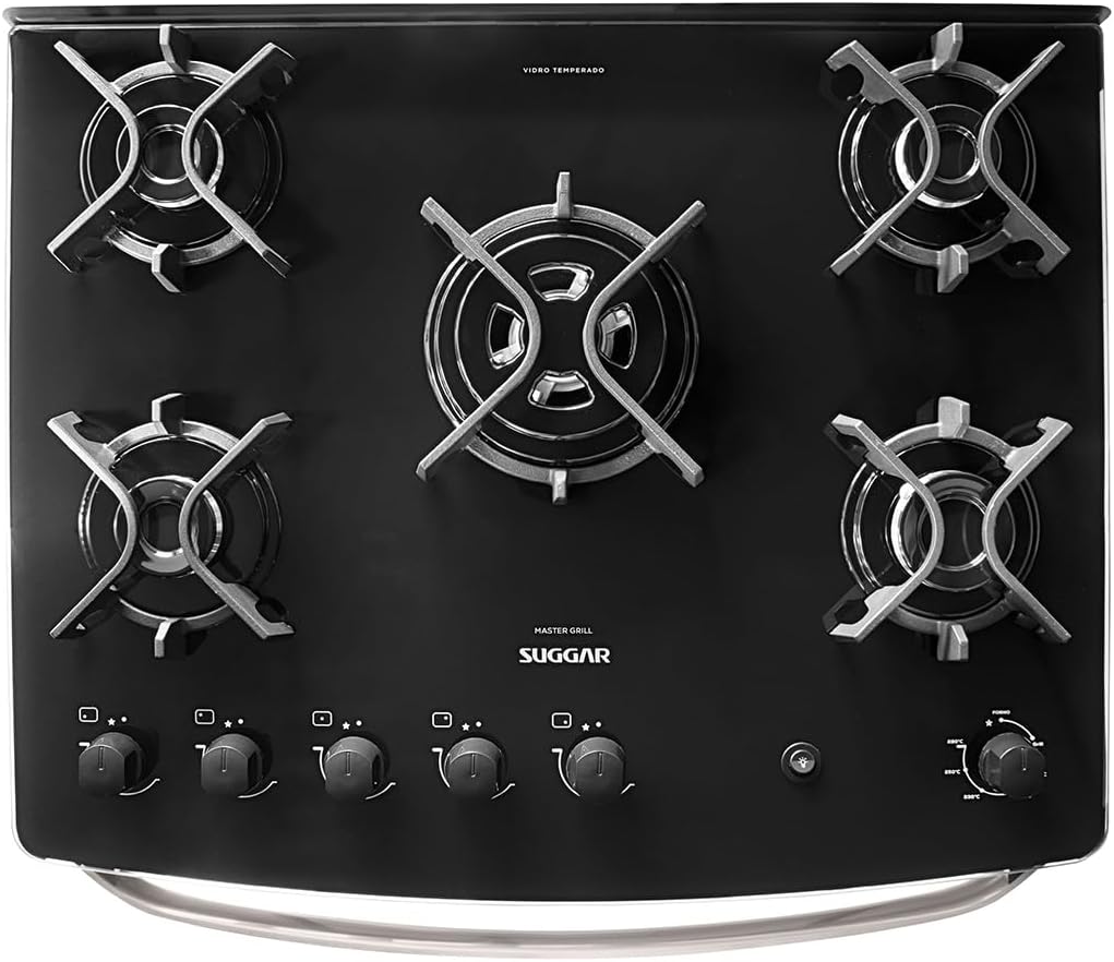 SUGGAR FOGÃO MASTER GRILL PRETO MESA DE VIDRO 5 BOCAS TRIPLA…