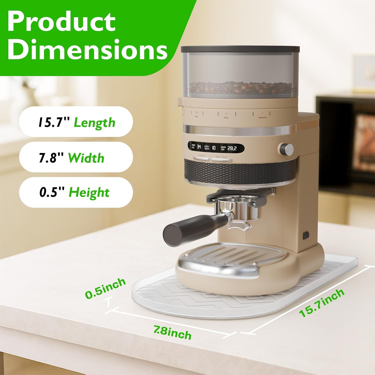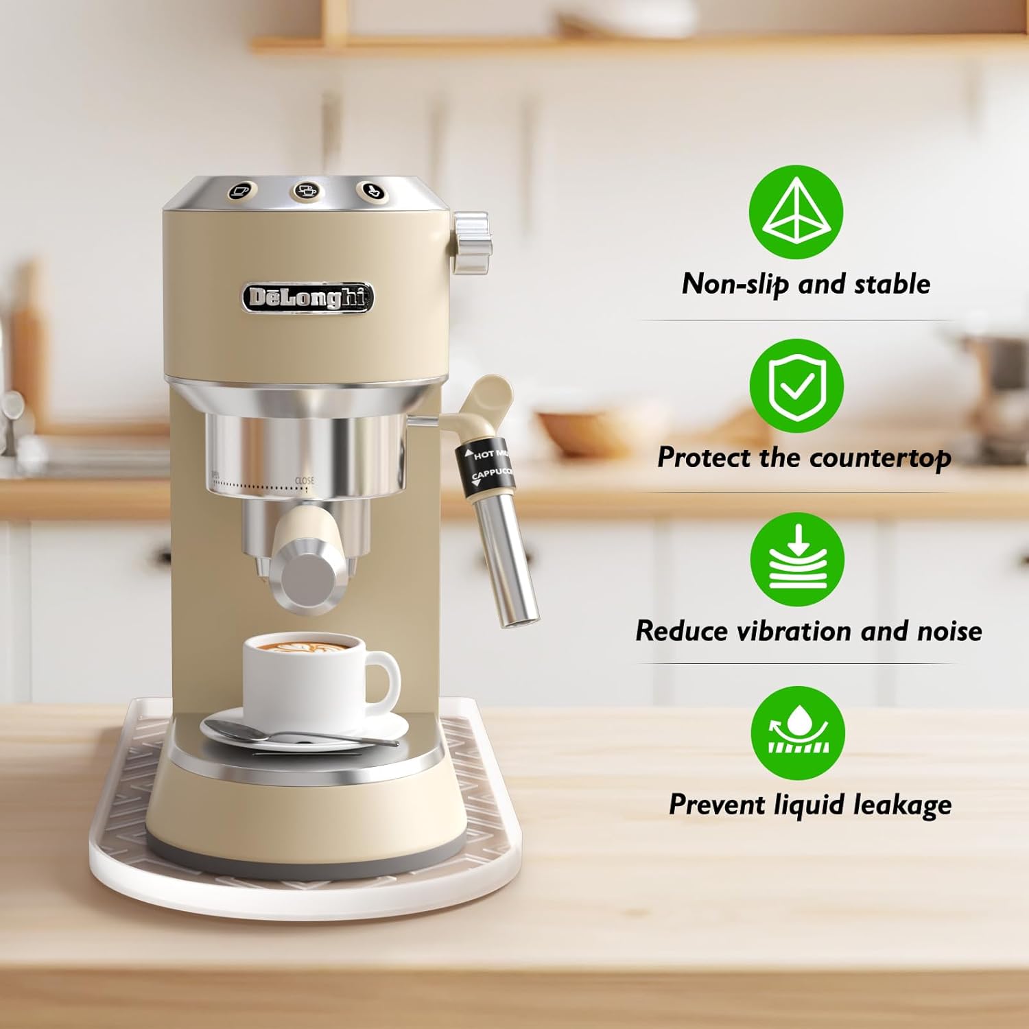 Review: My darling spouse does a fair amount of baking – especially around the holidays. Picture one of those big-ass KitchenAid mixers vs. tubs of butter, bushels of flour, and a silo of sugar – quite the war zone. At times, the mixer even struggles to stay in one place on the countertop. It occurred to me a formidable silicone mat would be a nice adder to the mixer’s combat arsenal.This “coffee maker” mat is perfectly sized and SHAPED for the kitchen mixer mission. It fits nicely under the mixer, providing a non-slip surface, and the raised-lip edge helps contain collateral overflows & spillages. I would imagine it would be a nice accessory for your coffee maker too 😄.👍 Likes:• Nice quality and thickness.• Raised edge.• Perfectly sized and shaped for our KitchenAid mixer.• Easy to clean and store away.• Super price.😢 Not so much: (no deduction)• Would love to see one with a diamond-plate embossing for garage use.🧰 Home MacGruber tip: If the mat develops a water-stain patina, immerse it in a 50/50 mix of vinegar and warm water for a few minutes. Then give it a once-over with the dish scrubber. 😄. I hope this review helped.