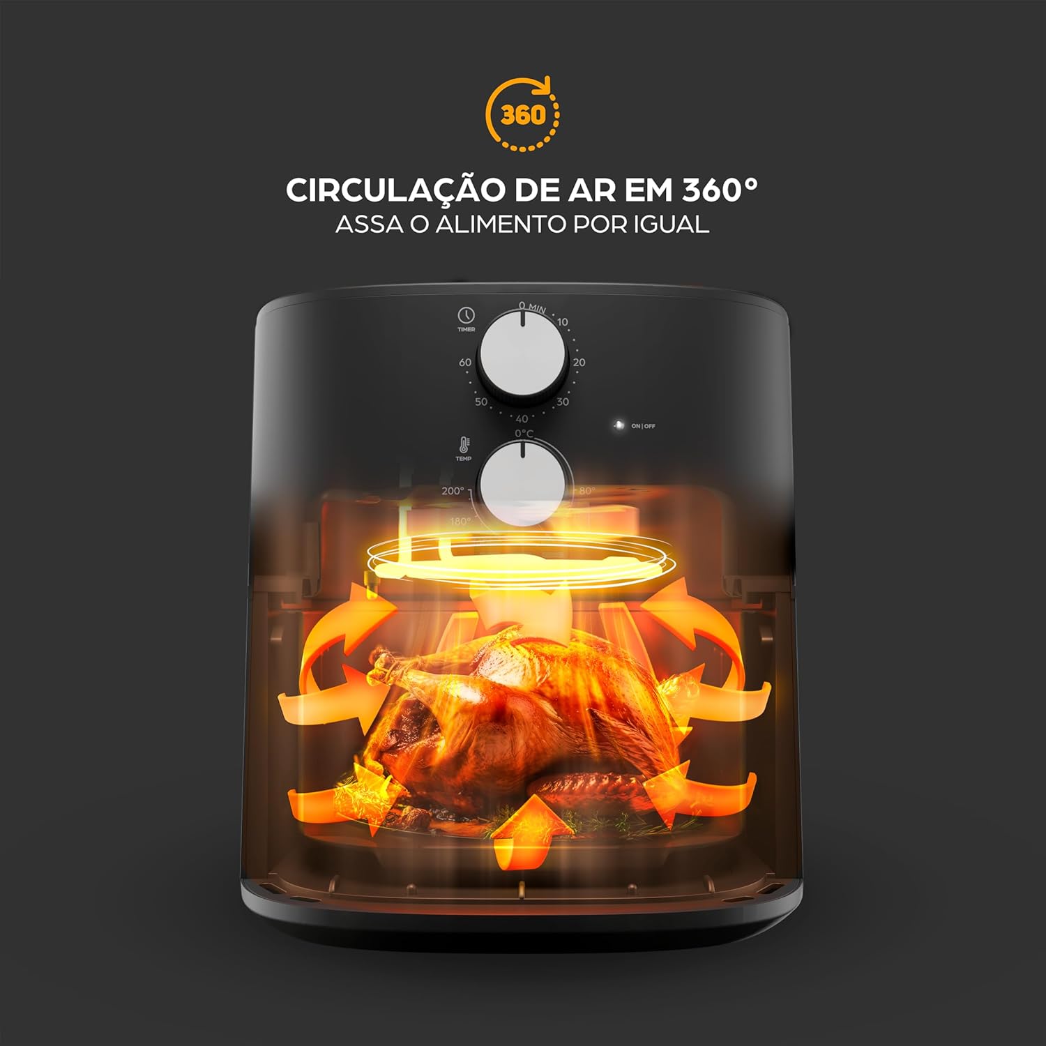- Timer com desligamento automático: Garante segurança e evita que os alimentos queimem.