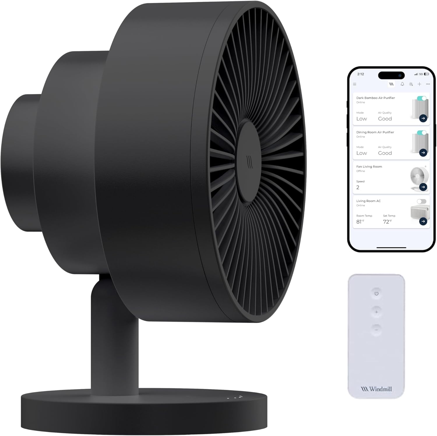 Review: I bought this fan because my home office is upstairs and gets really hot during the summer. I was looking for something that looked sleek, ran quietly, and wouldn’t break the bank—and this little Windmill fan delivered on all fronts.It’s surprisingly powerful for its size, with five speed settings, a modern design, and a few thoughtful extras like remote control and app functionality. I went with the navy blue version, and it looks great on my desk. It’s quiet enough for Zoom calls and focused work, but strong enough to actually make a difference in the heat.I was so impressed I ended up buying a second one for my bedside table. I tend to sleep hot, and this gives me the extra airflow I need—without freezing out my wife.Worth noting: it doesn’t oscillate, which could be a downside for some. But that wasn’t a feature I needed, so it wasn’t an issue for me.Highly recommend if you’re looking for a compact, stylish fan that punches above its weight.